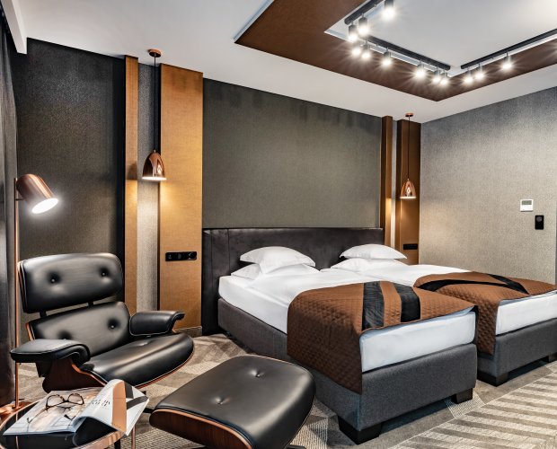 Are you traveling on business and looking for a comfortable place to work and rest? Are you wondering which hotel to choose in Białystok? The Business Room is the perfect choice for business travelers. A comfortable king bed, a large desk and an armchair to relax, as well as a designer room are the best choice for your rest and work. An additional advantage is the dinner included in the booking price, which will be prepared by the Restaurant Regiment Chef. Are you looking for a place to organize a business meeting or business trip? We have the perfect solution for you. A spacious Business Room on the first floor, with access to daylight and a tilt window, provides the right conditions for organizing meetings and training in a small group.