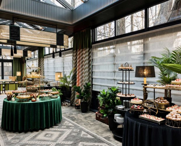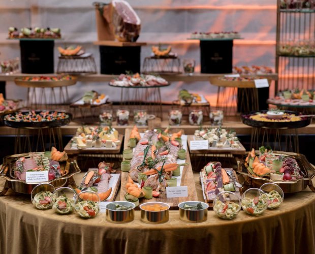 Bufety zimnych przekąsek, dodatkowe stoły tematyczne, live cooking.
