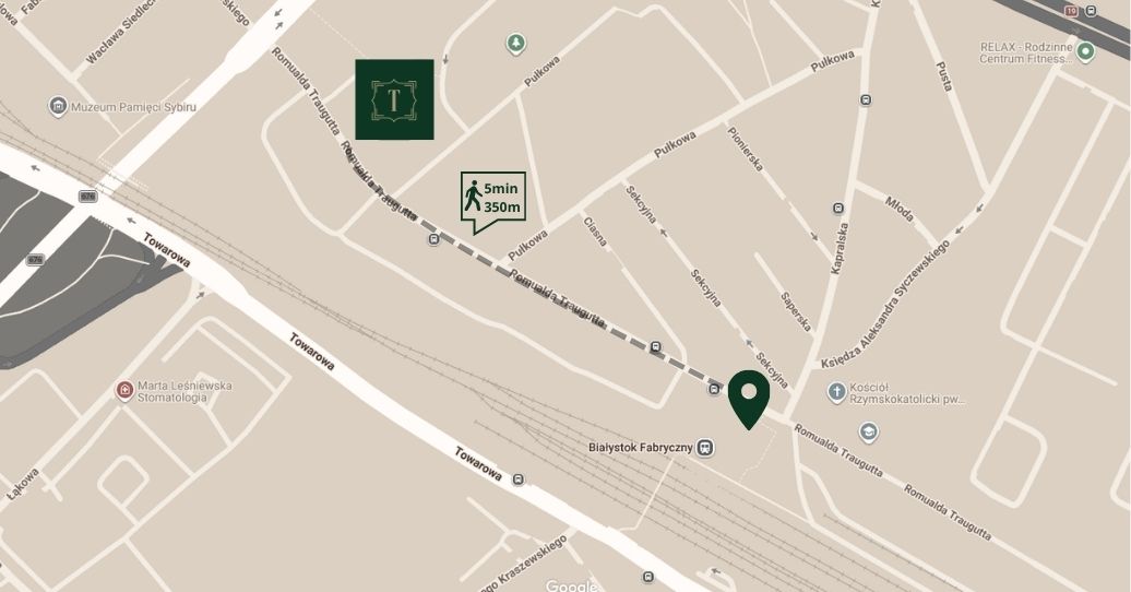 Z myślą o wygodzie naszych Gości udostępniliśmy dodatkowy parking, zlokalizowany w odległości około 350 metrów od Hotelu Traugutta3, w okolicy dawnej stacji kolejowej przy ul. Romualda Traugutta w Białymstoku.